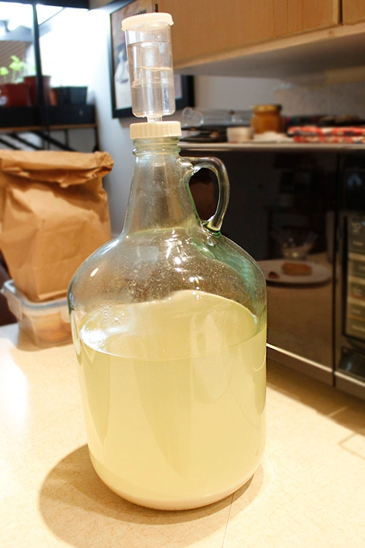 최대한 짜 내고, 발효한 병에 물을 조금 부어 흔들어 헹궈 섞었다. 그렇게 했더니 1갤런 저그에 딱 맞게 찼다. 대략 4리터 정도 된다. 사실 어디에 담아야 하나 고민을 했는데, 때맞춰서 남편이 요렇게 맞춤한 병을 중고장터에서 구입해 오는 바람에 더할 나위 없이 좋았다.
