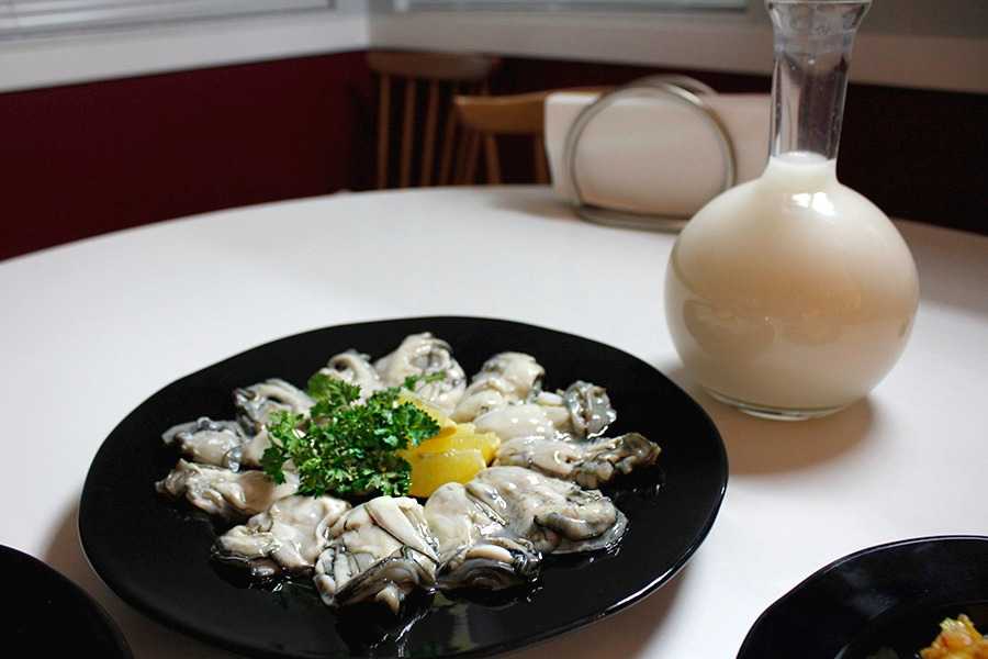 굴을 새 김장 김치 겉절이에 싸서 먹는 맛은 막걸리와 더할 나위 없이 어울렸다.