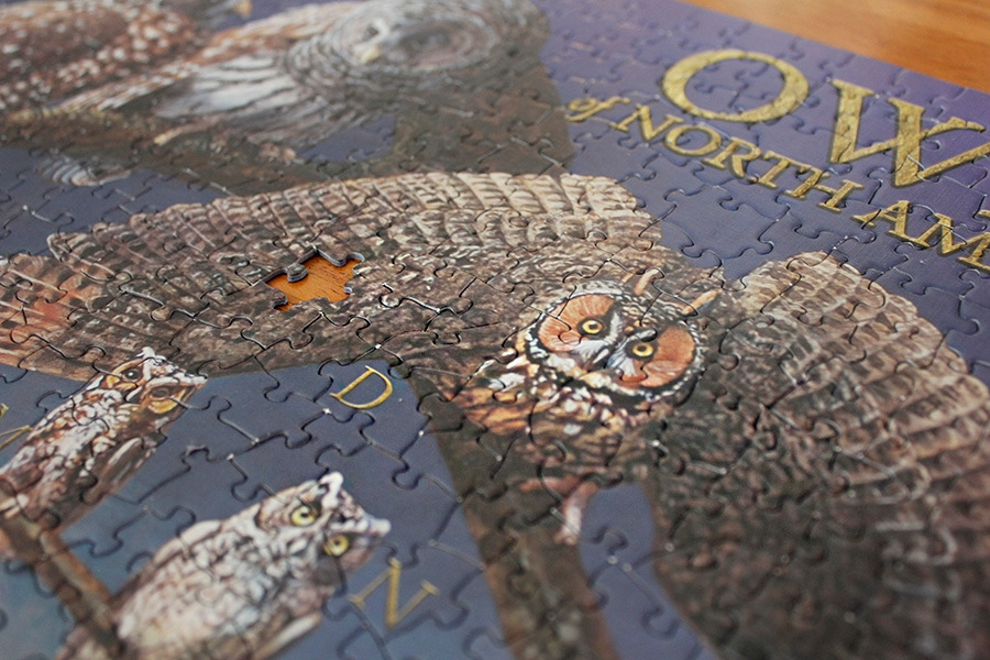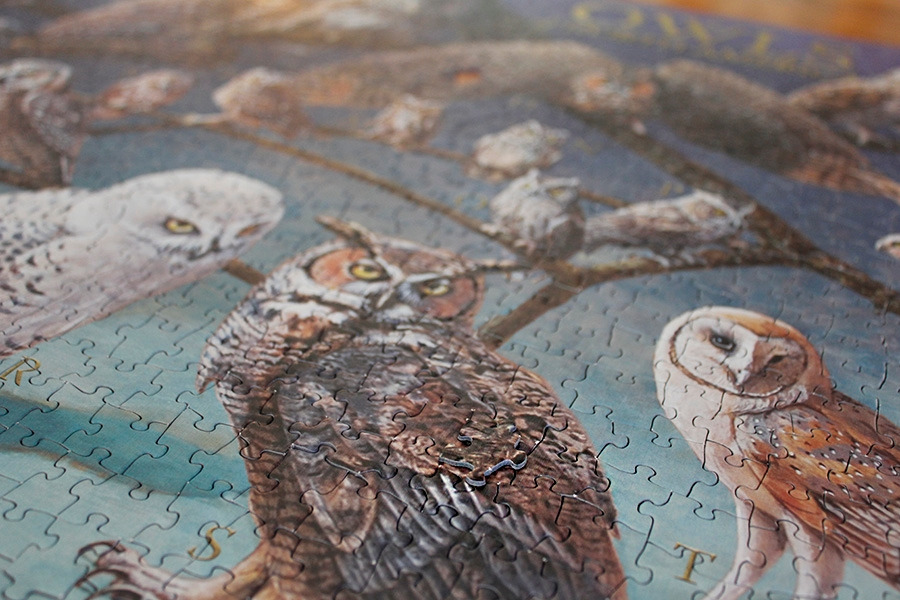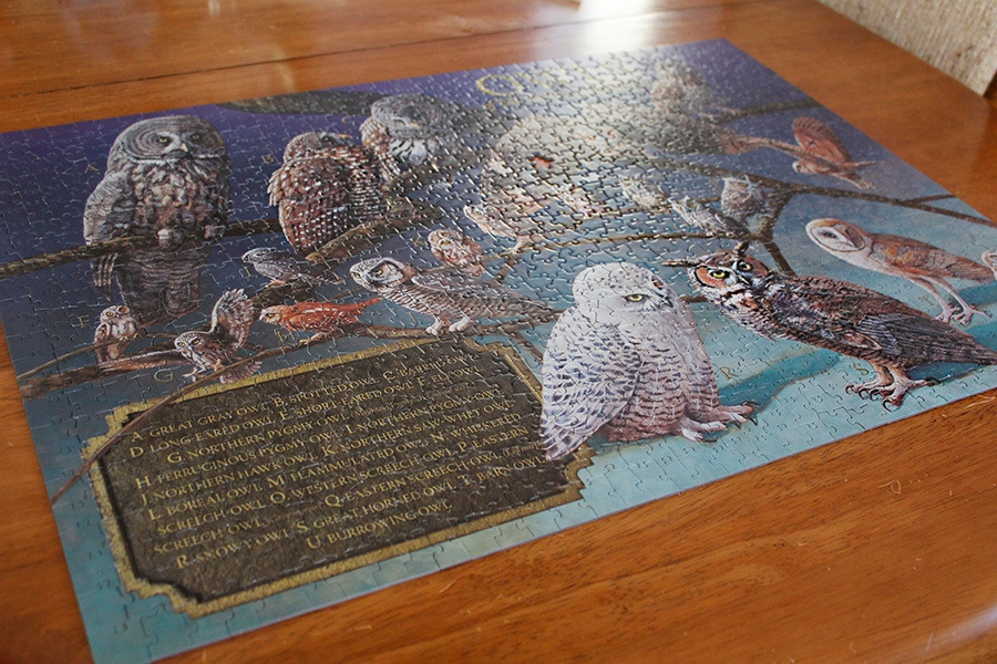작년 크리스마스 때, 시누가 보내 준 선물 중에서 올빼미 부엉이 그림이 잔뜩 들은 퍼즐이 있었다. 내가 부엉이를 좋아한다는 사실도 알고 계셨고, 또한 퍼즐을 즐긴다는 사실도 알고 계셔서 딱 나를 위한 퍼즐이라 생각하고 보내주신 것이었다. 너무 감사하게 받았는데, 막상 그 퍼즐을 맞출 시간은 없었다.