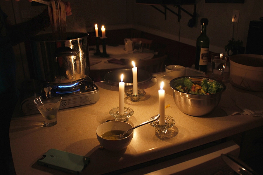 우리의 이번 정전은 그러나 상당히 로맨틱한 분위기가 연출되었다. 남편이 초를 넉넉히 챙겨 왔기 때문에, 그다지 어둡다고 느끼지 않고 저녁식사를 준비할 수 있었고, 여기저기 비추이고 있는 불빛은 마치 준비되었던 행사인양 재미났다.