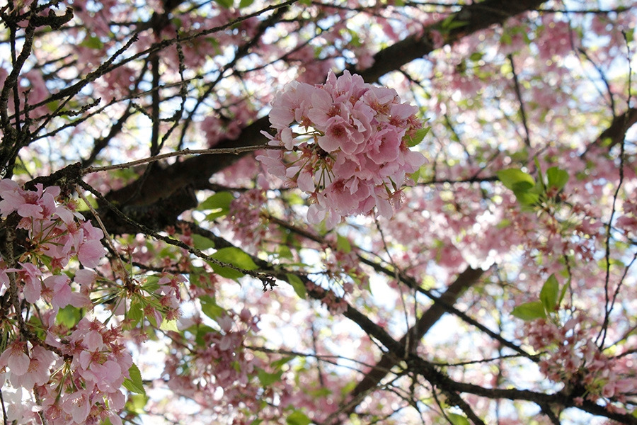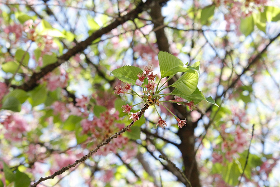 하지만 나는 약간 시간이 지나서, 색이 어우러질 때가 더 예쁘게 느껴진다. 이렇게 꽃들 사이사이로 연두색 잎이 나올 때면 그 조화가 황홀하게 아름답다. 꽃 안쪽의 진분홍이 드러나면서 연분홍이기만 하던 꽃에 화색이 돈다.
