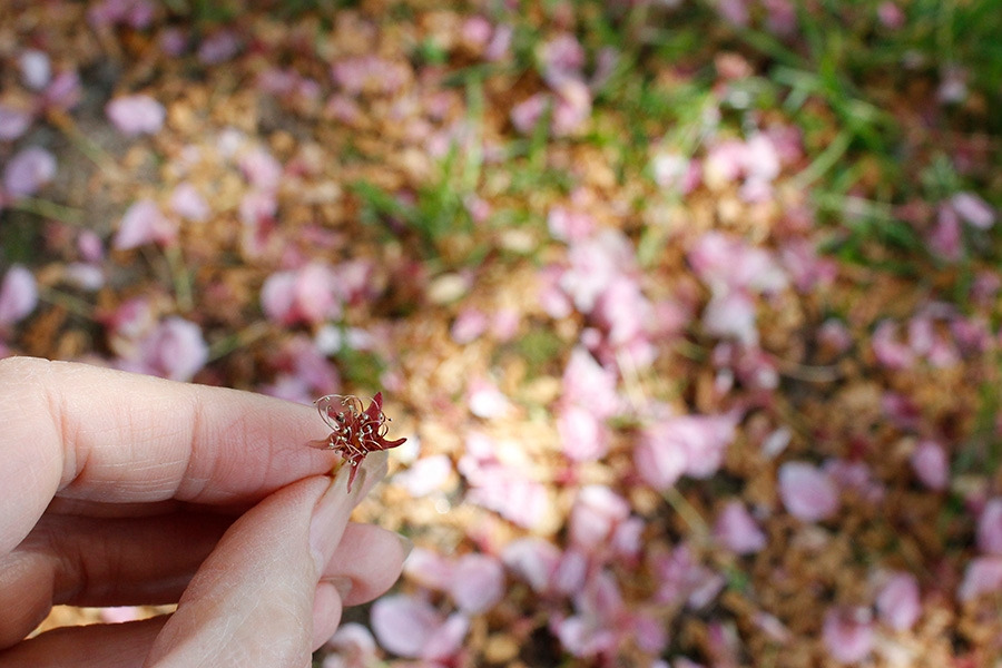아름답게 피었던 벚꽃이 거의 다 져 간다. 바람이 불 때마다 눈꽃처럼 흩날리며 손을 흔든다. 나는 만개한 벚꽃도 좋지만, 지금 이 때도 참 좋다. 꽃이 활짝 폈을 때에는 분홍으로만 가득 차는데, 꽃이 질 때는, 녹색 잎도 나오고, 그리고 꽃이 진 자리에 진분홍 별이 나타나기 때문이다...