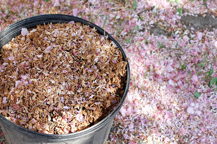 이제 이 꽃잎은 사뿐히 거름통으로 들어간다. 거기서 제 역할을 또 아름답게 해 낼 것이다. 음식 자투리와 쓰레기를 모아서 발효시키는 통에서 이런 갈색 꽃잎은 아주 효자 노릇을 한다. 젖은 재료와 마른 재료의 조화가 이루어져야 건강한 거름이 탄생되니까.