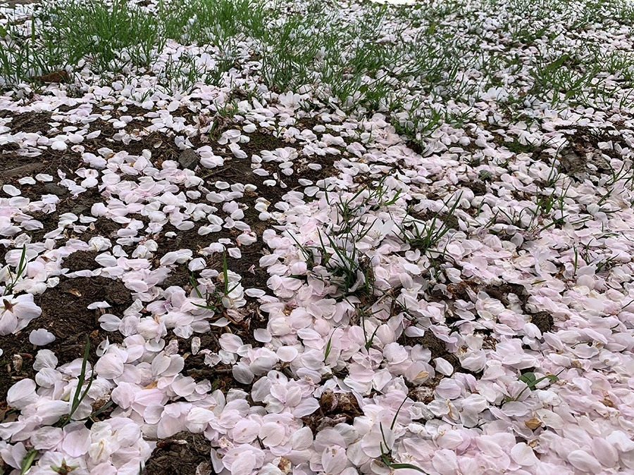 그리고 벚꽃은 아름답게 진다. 눈이 내리듯이... 그러나 더 가볍게, 바람에 흩날리며 온 동네를 하얗게 물들인다. 조금씩 퍼져가다가 결국은 빽빽하게 한치의 빈틈도 없이 땅을 메꿔버리는데, 눈처럼 빨리 녹지 않고 밟아도 망가지지 않는다.