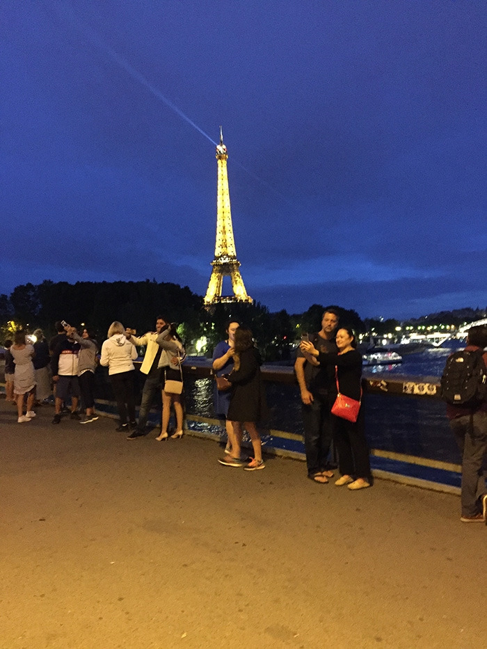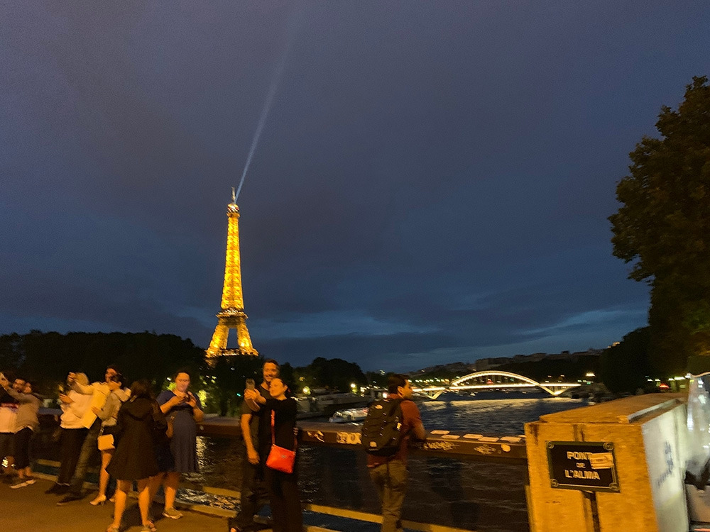 밖으로 나가자 바로 앞에 알마다리(Pont D'Alma)가 보였고, 많은 사람들이 에펠탑 사진을 찍으며 여유를 즐기고 있었다. 세상에! 우리가 여기에 왔구나! 금실처럼 빛나는 에펠탑은 화려한 사이키 조명을 뽐내며 그 위용을 자랑하고 있었고, 우리는 몇 초간 정신을 잃었다. 하지만 여유롭게 감상할 시간이 없었다. 우리도 저 셀피족에 합류하고 싶었지만 일단 사진 한 장만 찍고 반대쪽으로 달리기 시작했다.