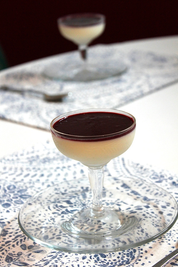 이렇게 해서 냉장고에 3시간 정도 두면 굳으면서 형태가 고정된다. 옆으로 기울여도 쏟아지지 않는 젤리 형태가 되는 것이다. 그러면 서빙할 때에 그 위에 뭔가 다른 것을 얹어서 할 수 있는데 윗면이 판판하니 뭔가 얹어도 모양이 망가지지 않고 예쁘다.