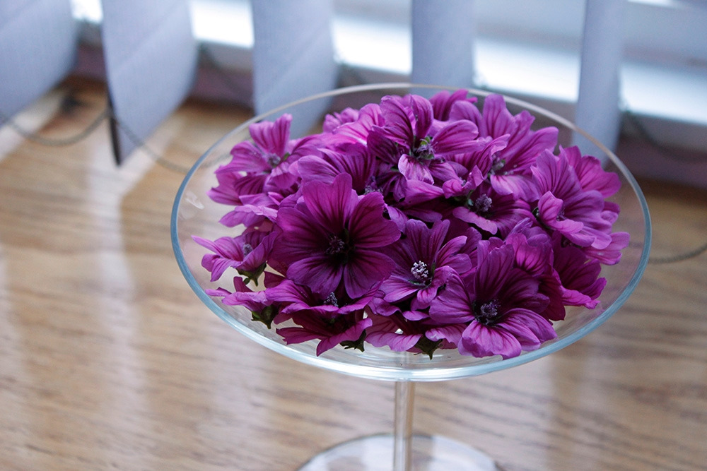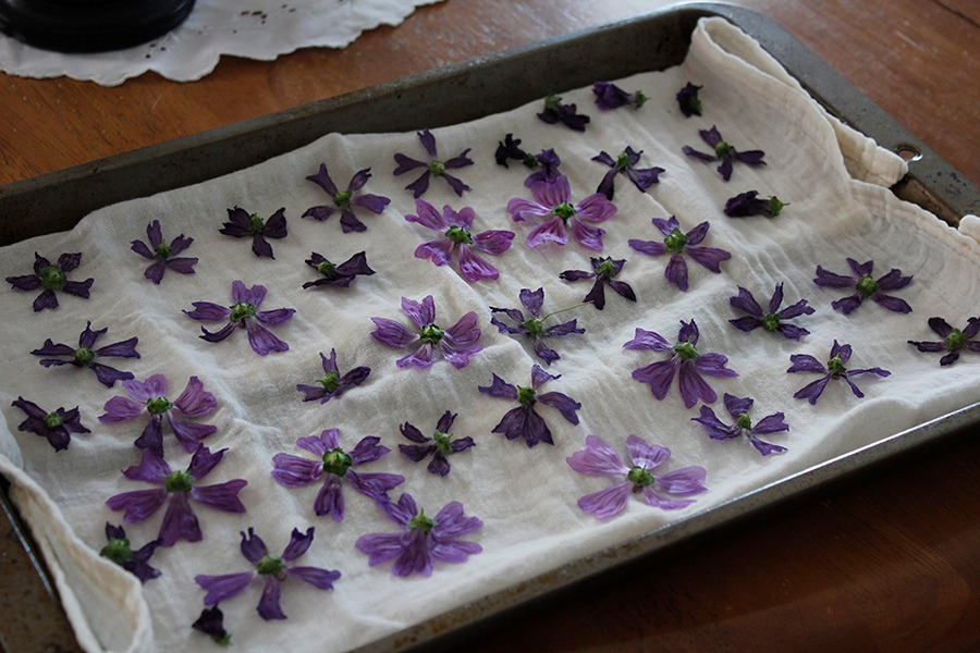 나는 일주일에 한두 번, 작은 그릇을 챙겨 들고나가서 꽃들을 따 가지고 들어온다. 그리고 하나씩 꽃술을 떼어내고는, 손으로 조심스레 잡아서 하나씩 씻는다. 전에 민들레 꽃차도 만들어봤지만, 당아욱은 그것보다 훨씬 약해서 조심스럽게 다뤄야 한다.