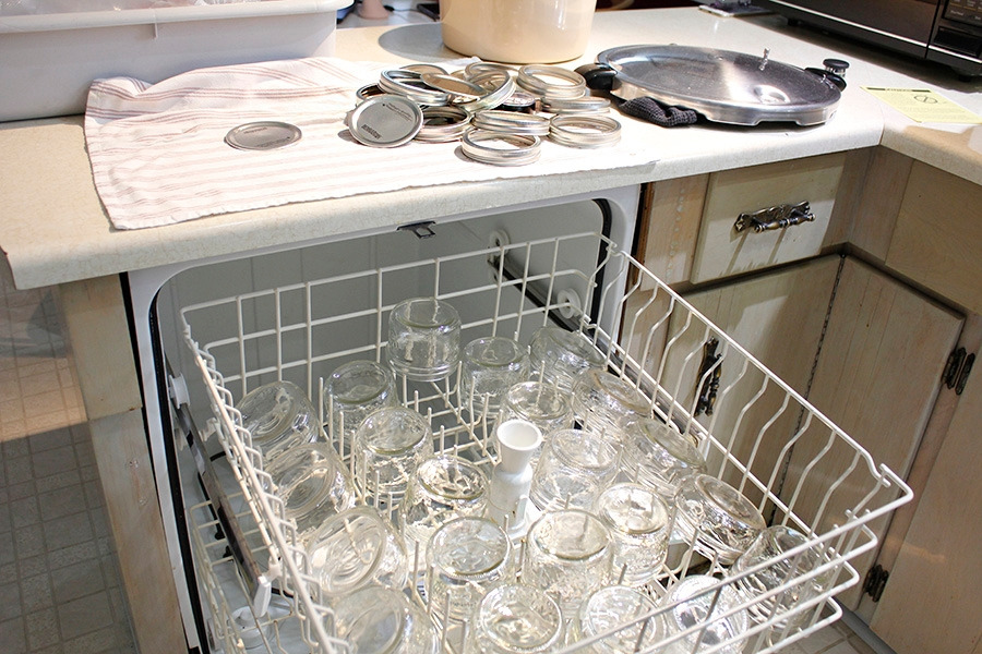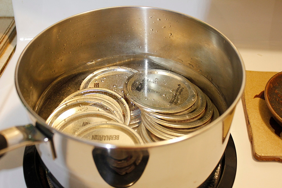병조림을 할 병은 예전에 깨끗하게 씻어둔 것이었지만, 다시 한번 열탕 소독을 하였다. 우리는 식기세척기에 뜨거운 물을 이용해서 애벌 헹굼 코스로 짧게 돌려서 해결했다. 뚜껑은 냄비에 물을 뭉근하게 끓여서 따끈하게 준비한다.