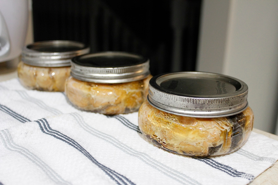 방법은, 간단히 말해서, 작은 유리병에 재료를 차곡차곡 채워 넣고, 열을 가하여 밀봉을 하는 방식이다. 야채나 과일은 푹 익으면서 맛이 숙성되지만, 이런 생선은 뼈까지 녹을 만큼 익기 때문에 영양섭취 면에서도 더욱 좋다. 한국에서 흔히 이용되는 꽁치 통조림을 상상하면 비슷할 것이다.