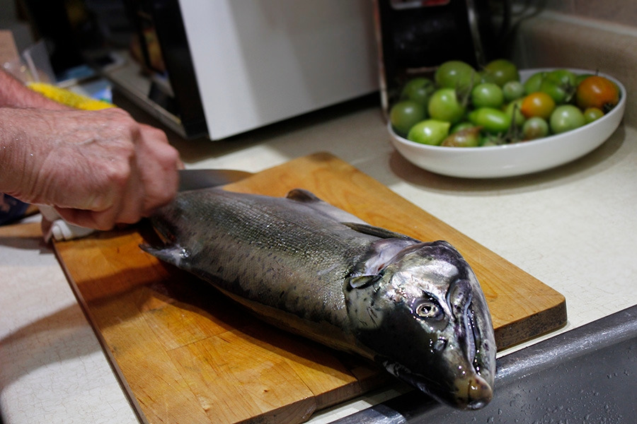 이곳 북미의 서부 지역의 바닷가에는 다양한 연어가 서식하는데, 가을철이 되면 그중 상당수가 산란을 하러 이곳 밴쿠버 지역의 계곡을 올라온다. 고향으로 돌아와 알을 낳고 죽는 연어의 이야기는 다들 잘 알 것이다. 그러면 우리 동네의 곰들은 겨울잠을 자기 위해서 연어를 사냥하여 기름진 껍데기를 먹고, 사람들도 낚시 허가증을 받아서 제철 낚시를 한다. 킹연어 슈눅(Chinook)은 하루에 2마리, 그 밖의 다른 종류는 4마리까지 잡아도 되는데, 우리가 선물 받은 것은 살이 연하고 맛있는 은연어 코호(Coho)이다.