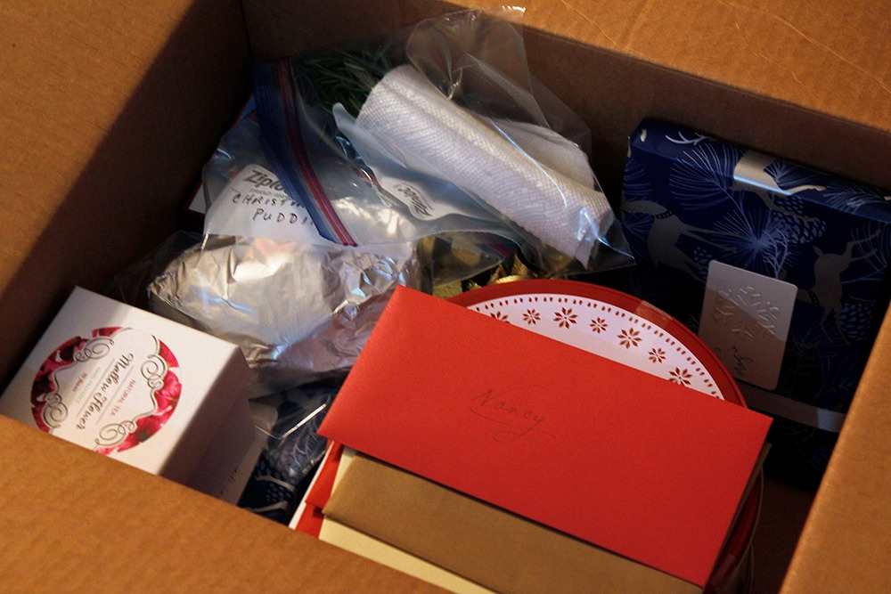 이렇게 완성된 것들을 모두 모아서 하나의 상자에 넣으려는 남편. 그러나 실패하고 말았다. 자식들이 고모께 전해달라고 가져온 선물들도 있었기 때문이었다. 결국 여러모로 시도를 하다가 두 개의 박스에 나눠서 포장하였다.