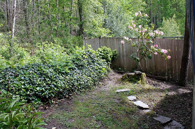 남편은 예전에 있던 담장을 여러 차례 보수를 했고, 그걸로도 안 되자 아이비를 심어서 지탱하려고도 시도해봤지만, 결국은 덩굴이 담장을 집어삼키고 점점 누워버리는 바람에 더욱 보기 싫게 되어버렸다. 그렇게 버티고 버티다가 우리는 결국 담장을 포기하고 다 헐어버리고, 그냥 산으로 열린 채 살게 되었다.