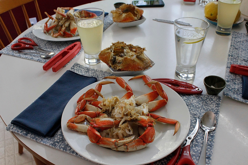 은퇴 파티를 하자고 했을 때, 그런 것 필요 없다고 했던 남편이지만, 그래도 어찌 그냥 넘어갈 수 있겠느냐고 내가 우겼다. 마침 이 지역에서 유명한 게, 던지니스 크랩 생물을 판다는 이메일이 왔길래, 그걸로 주문하는 것으로 파티 준비가 시작되었다. 그것과 함께 생연어도 함께 주문했다가 항구에 가서 픽업해왔다.