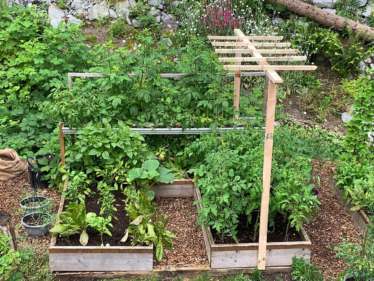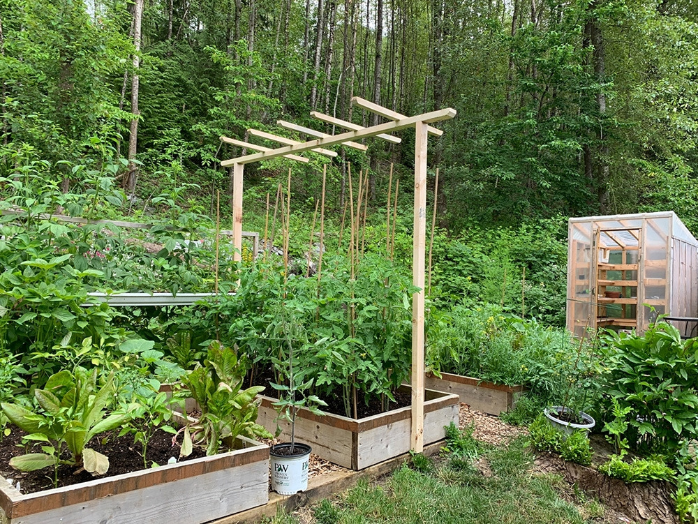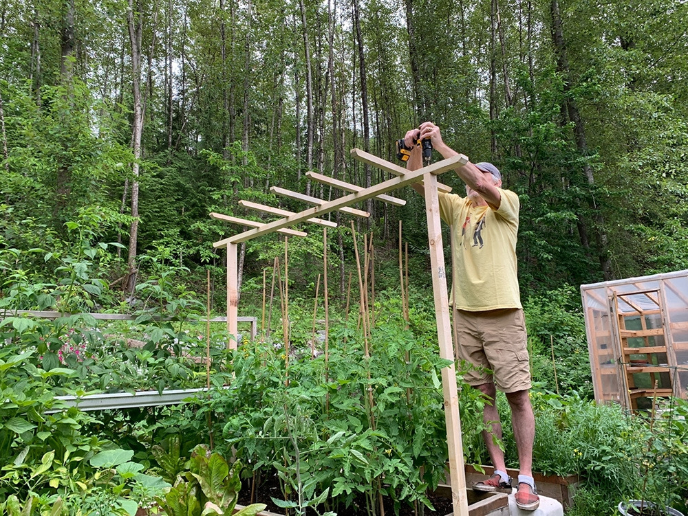 그러나 퇴원 후 컨디션이 나아지면서, 남편의 마음은 매일 텃밭으로 나갔다. 그러다가 결국은 동부 고향으로 여행 떠나기 사흘 전, 이것저것 준비로 바쁜 와중에 남편은 나가서 나무를 사 왔다. 2X3인치 두께에 8피트(2.4미터) 사이즈 4개의 저렴한 나무였다. 한통의 나무가 아니고 조각을 연결한 종류였으나 이런 용도로는 무리가 없으리라고 판단하였다.