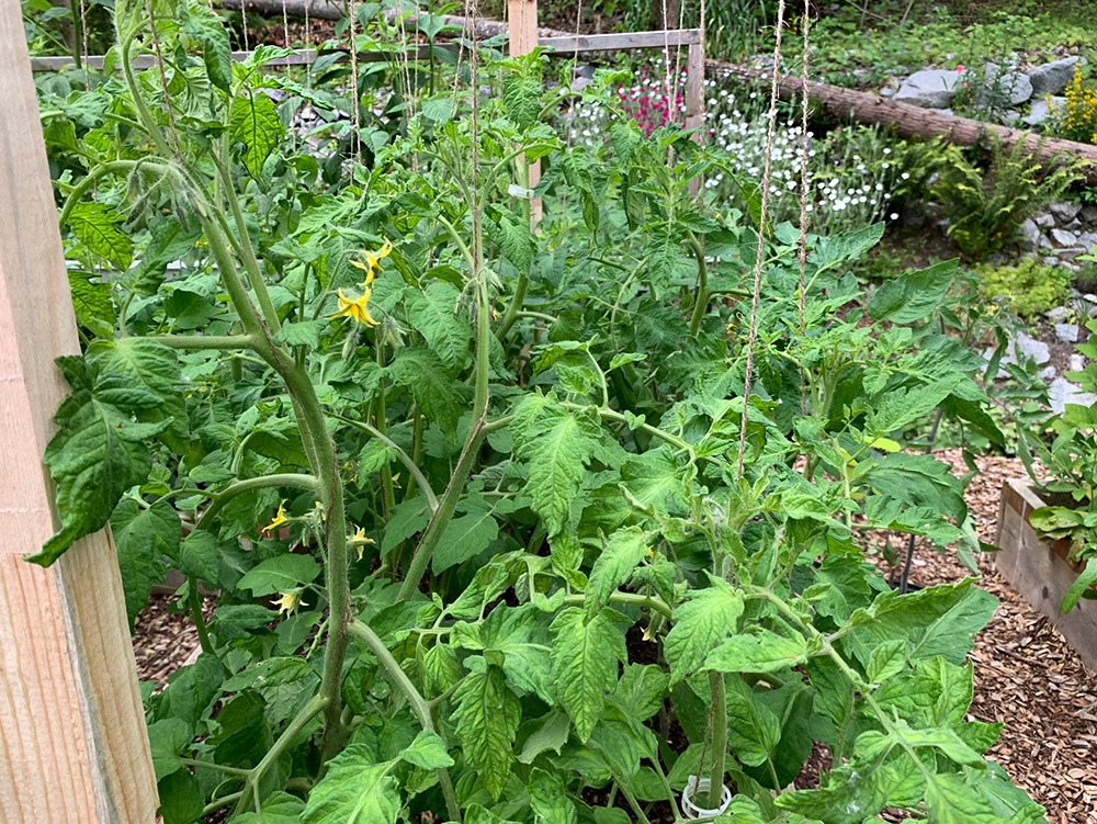 문제는 그렇게 결정하고나서부터 남편 건강이 계속 안 좋았다. 한 달 넘게 아팠으니 지지대 같은 것을 고민할 상황이 아니었다. 음식도 못 삼키는데 텃밭이 무슨 대수겠는가! 그러나 와중에 토마토는 자라서 쓰러지기 시작했고, 나는 황급히 대나무대를 가져다가 꽂았다.