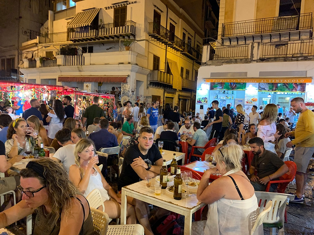 이번 여행 중, 시실리 팔레르모에서 해수욕을 마치고 한밤중 집에 가는 길이었다. 집 거의 다 가서였는데, 어느 골목에 불이 훤하게 켜있고 사람들이 바글바글한 게 호기심이 갔다. 내가 관심 있게 빤히 쳐다보니 남편이 말했다.