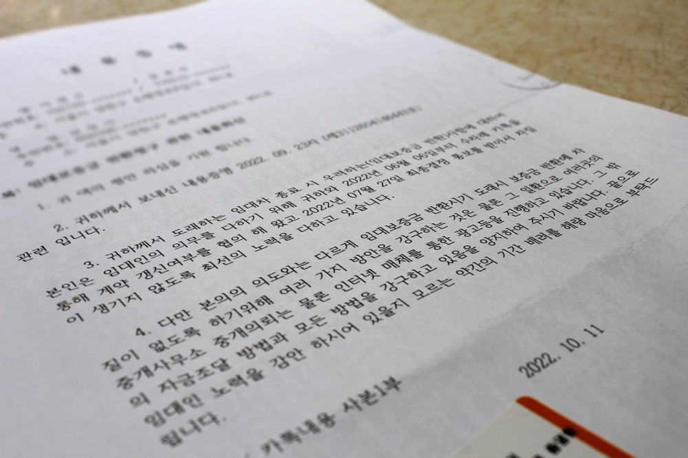 그리고 그다음 날 내용증명과 카톡이 도착했다. 몸이 좋지 않아 답장이 늦었으며, 본인들이 보증금 지급에 차질이 없게 하기 위해, 다음 세입자 구하기 및 돈 구하기에 최선을 다하고 있으나 용이하지 않아, 약간의 날짜 배려를 해주었으면 좋겠다는 내용이었다.
