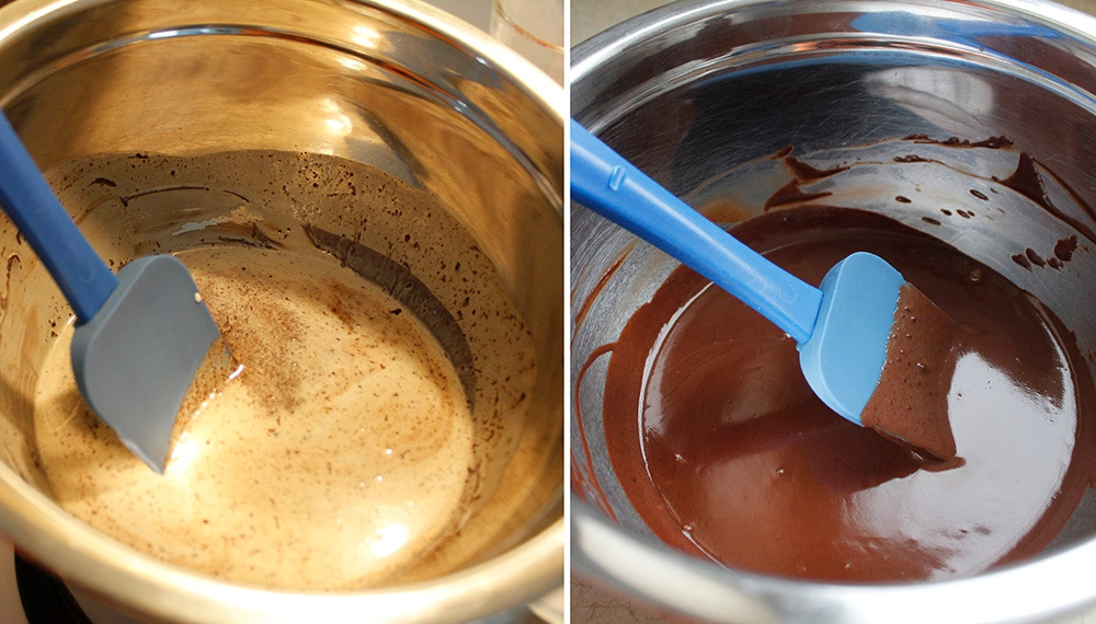 7. 시간을 두고 계속 저어서 크림과 초콜릿이 완전히 섞이도록 해준다.