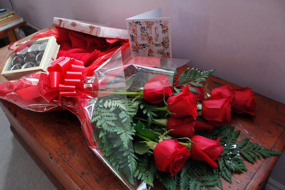 향이 좋은 장미를 품에 안고, 남편에게 초콜릿을 권했다. 못생긴 초콜릿에 대해 난감해하는데, 한 입 먹은 남편이 이러는 게 아닌가!