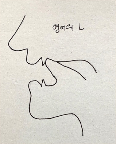 설명이 필요하다 보니, 고민을 하다가 그림을 그려봤다. 혀 끝을 올려서 앞니의 바로 뒤에 착 붙이면, 이 발음은 어렵지 않게 낼 수 있다. 찰떡같이 붙었다가 떨어지는 소리이다. 한국어의 ㄹ받침과 비슷하지만, 소리가 약간 달라지는 이유는, 한국어의 ㄹ받침은 맨 오른쪽 그림처럼 혀를 안쪽으로 말아 넣어서 입천장을 치기 때문에 milk 같은 소리를 발음할 때 원어민이 못 알아듣는 일이 생기기도 한다.