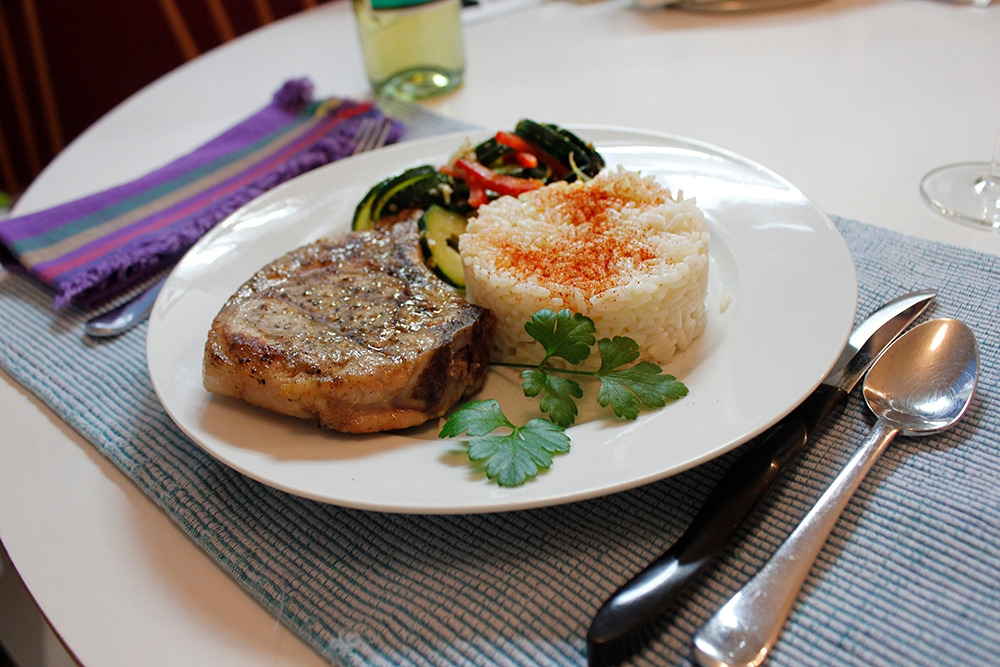 따라서 서양식 식사는 언제나 다 따로이다. 그러다 보니 양식에서 먹는 밥은 늘 간이 되어있다. 밥을 지을 때 아예 육수를 넣어서 짓고, 접시에 담고 나서는 위에 버터를 얹기도 하고, 파프리카 가루를 뿌리기도 한다. 그리고 먹을 때에는 밥은 밥대로, 고기는 고기대로 따로 먹는다.
