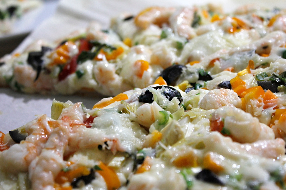 대부분의 경우는, 집에서 직접 만들어 캐닝해둔 우리의 피자 소스를 바르거나, 참나물을 이용해서 만든 페스토를 소스로 사용하고, 각종 페페로니와 살라미등을 푸짐히 얹어서 굽곤 하는데, 최근에는 알프레도 소스를 사용한 새우 피자에 맛을 들였다.