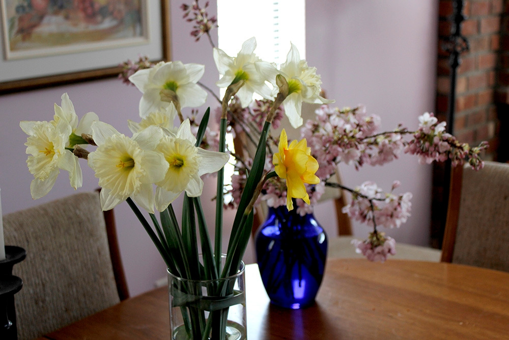느리게 봄이 오는 밴쿠버, 아직도 패딩을 입고 마당에 나가서 차가운 빗속에 일을 해야 하지만, 그래도 마당에 나가있는 시간이 부쩍 늘어서 글 쓰는 시간이 확연히 줄었고, 또 실내에서는 나름의 다른 방법으로 봄을 즐기고 있다. 집안의 꽃을 다 즐기고 날 때쯤이면 마당에 한가득 피어주겠지.