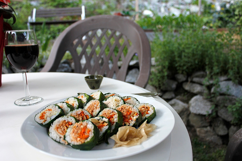 곰취 쌈밥을 하려는데, 강된장 끓여서 곰취 잎으로 싸면 한국식으로 딱 좋겠지만, 직접 싸 먹는 게 익숙하지 않은 남편을 위해서 미리 싸서 대령하려면 아무래도 강된장은 좀 흐른다. 그리고 남편에게 크게 어필할 것 같지 않았다. 좀 다르게 해 볼 수 없을 까? 그래서 김밥모양으로 싸보기로 했다.