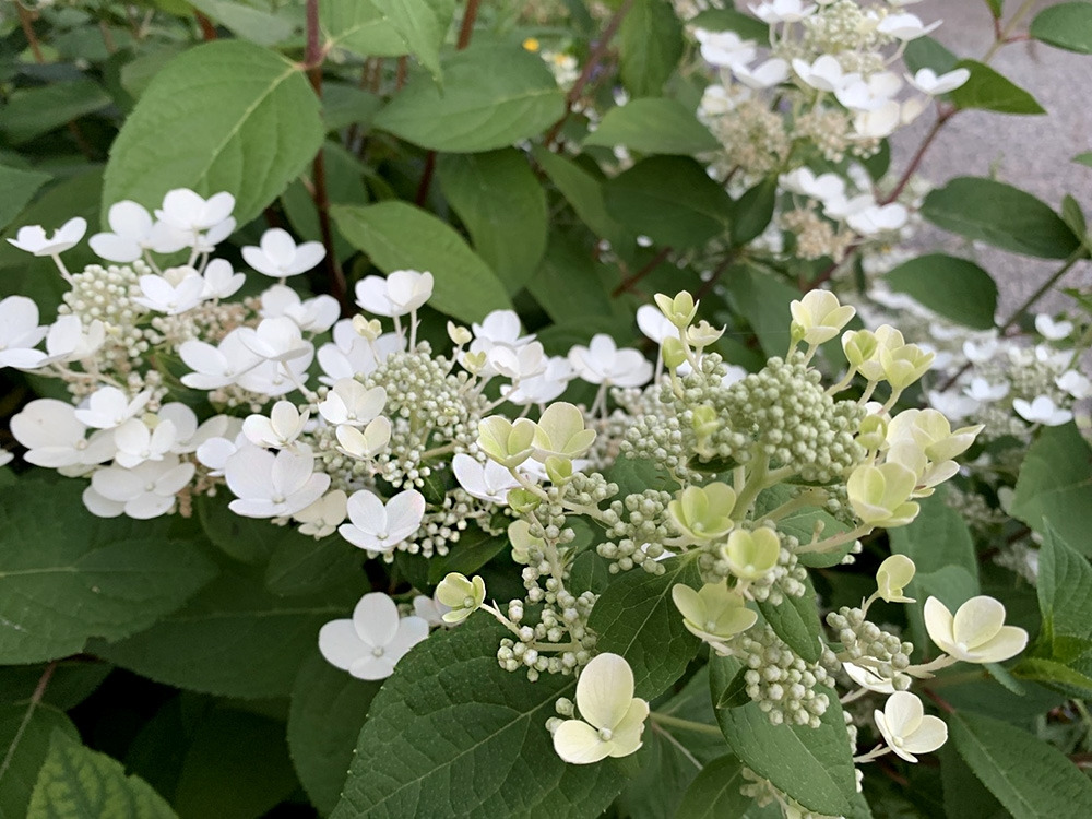 첫 번째의 경우는 가지치기를 여름 지나서 하게 되면, 그다음 해에는 꽃이 안 피는 깻잎 수국이 되어버린다. 늦어도 7월 중순까지는 가지치기를 마쳐야 한다. 새로 뻗은 가지는 겨울이 오기 전에 꽃망울을 저장하고, 그렇게 겨울을 난 이후, 다음 해에 그 꽃이 피는 것이다. 즉, 작년의 가지에서 꽃이 올라온다.