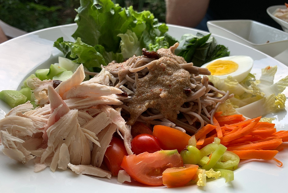 서양 사람들은 이렇게 야채를 듬뿍 넣은 국수를 그냥 샐러드라고 부른다. 때론 밥이나 퀴노아가 들어가기도 하고, 그래도 야채가 많이 들어가면 다 샐러드라고 부른다. 즉, 쟁반국수는 국수 샐러드인 셈이다. 국수는 거들뿐, 메인 재료는 야채라고 생각한다.