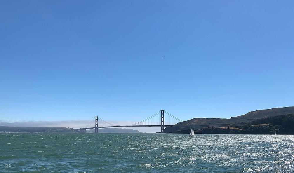 그리고 바다를 가로질러 목적지에 가까워질 무렵이면 보이기 시작하는 금문교. 안개 때문에 제대로 보이지 않는 날들이 많다는데, 이 정도면 아주 선명하게 보이는 편이라고 할 수 있다.