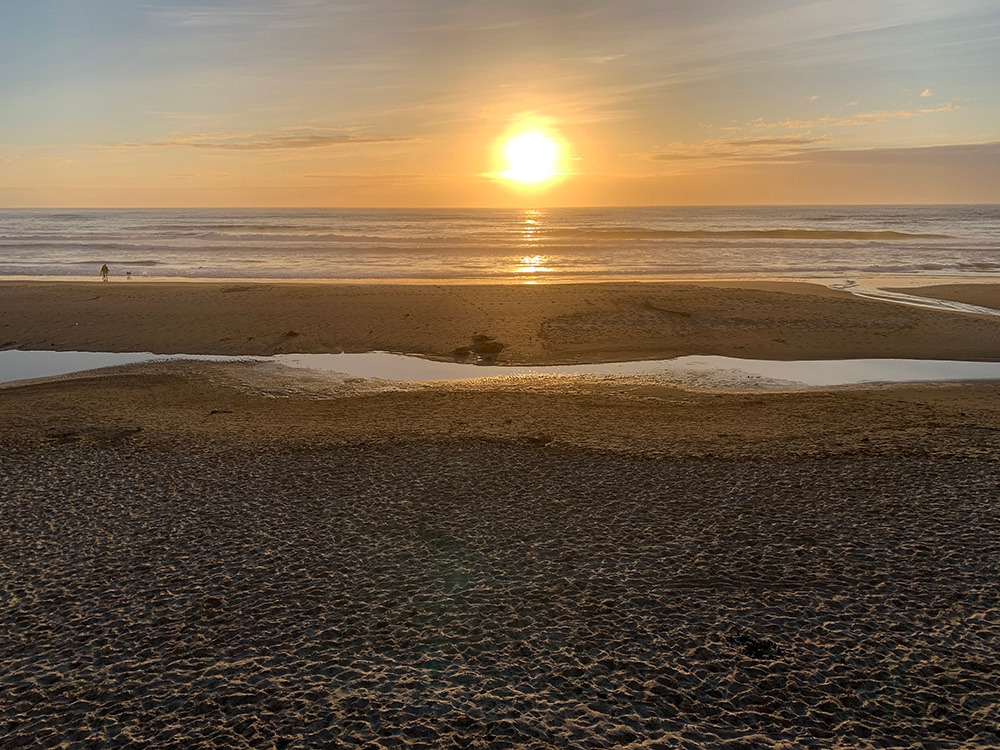 모래사장은 여러 가지 모습을 고루 보여줬다. 마른 유기물의 흔적, 파도가 지나간 자리, 그리고 그 파도가 돌에 만들어놓은 구멍들까지 모두가 평화로웠다.