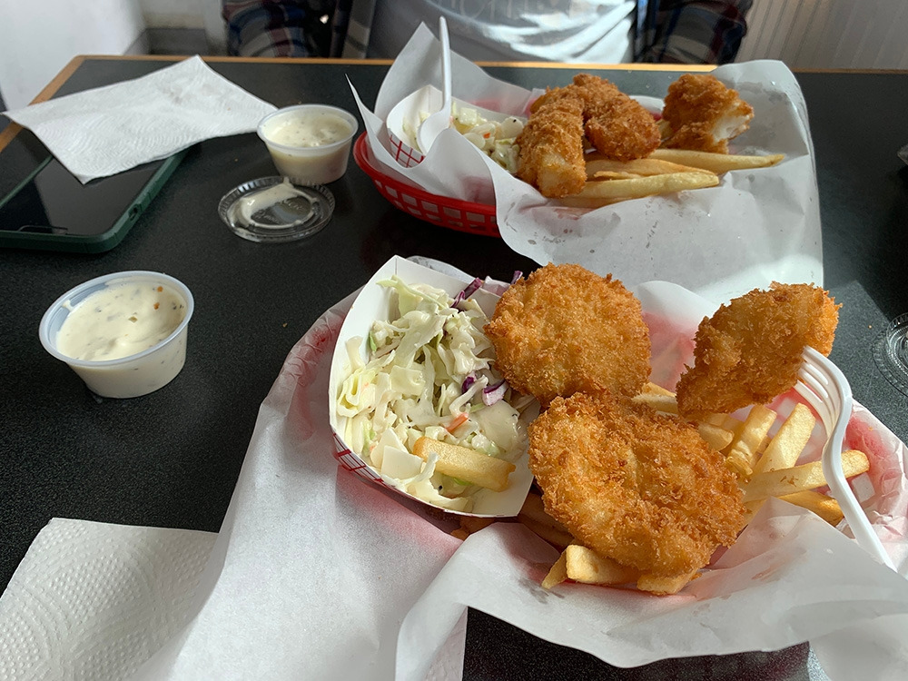 남편은 대구튀김으로, 나는 할리벗으로 주문했다. 사이즈는 생각보다 작았지만 둘이서 각자 배를 채울 수 있을만한 양이었다. 빵가루를 살짝 함께 입혔고, 튀김옷이 두껍지 않아서 맛있었다. 결정적으로 튀김기름이 아주 신선하게 느껴져서 좋았다. 함께 따라 나온 코울슬로도 맛있었다.
