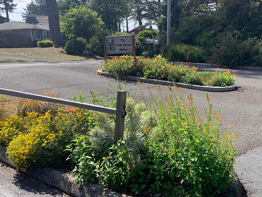 아기자기하게 화단을 잘 가꾼 동네로 들어서자, 깔끔하게 정돈된 주차장 입구가 눈에 들어왔다. 코니 한센 정원 (Connie Hansen Garden)이라는 소박한 팻말이 있었다.
