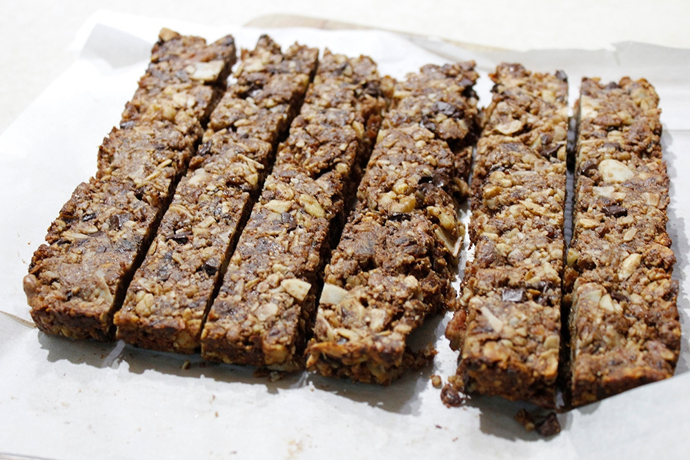 결국 내가 한발 양보하기로 했다. 나 혼자 먹겠다고 만드는 것은 아니니, 설탕시럽이나 물엿을 넣지는 않지만, 그래도 뭔가 순수한 단맛이 나는 것을 좀 섞어주면 좋겠다 싶었다. 그렇게 해서 새로운 견과류 바가 탄생했다. 이 버전은 완전 성공이었고, 로드 트립 갈 때에도 아주 유용했다. 남편도 먹을 때마다 엄지척을 해주었다.