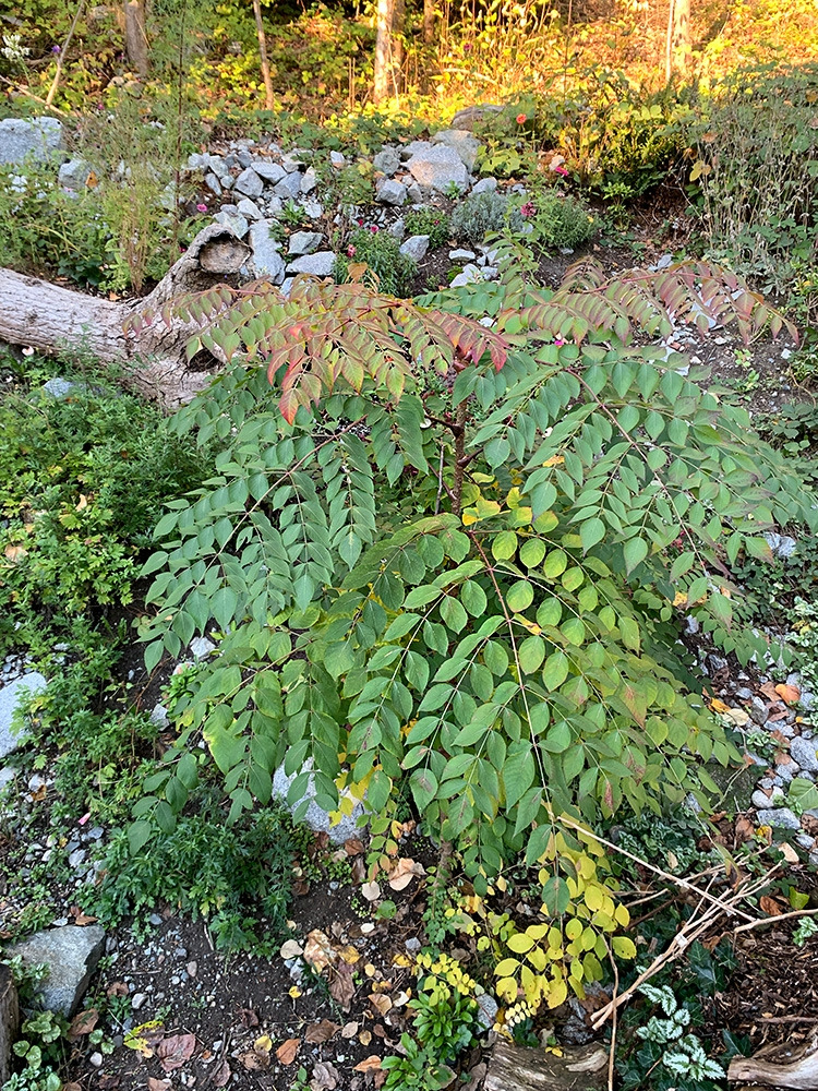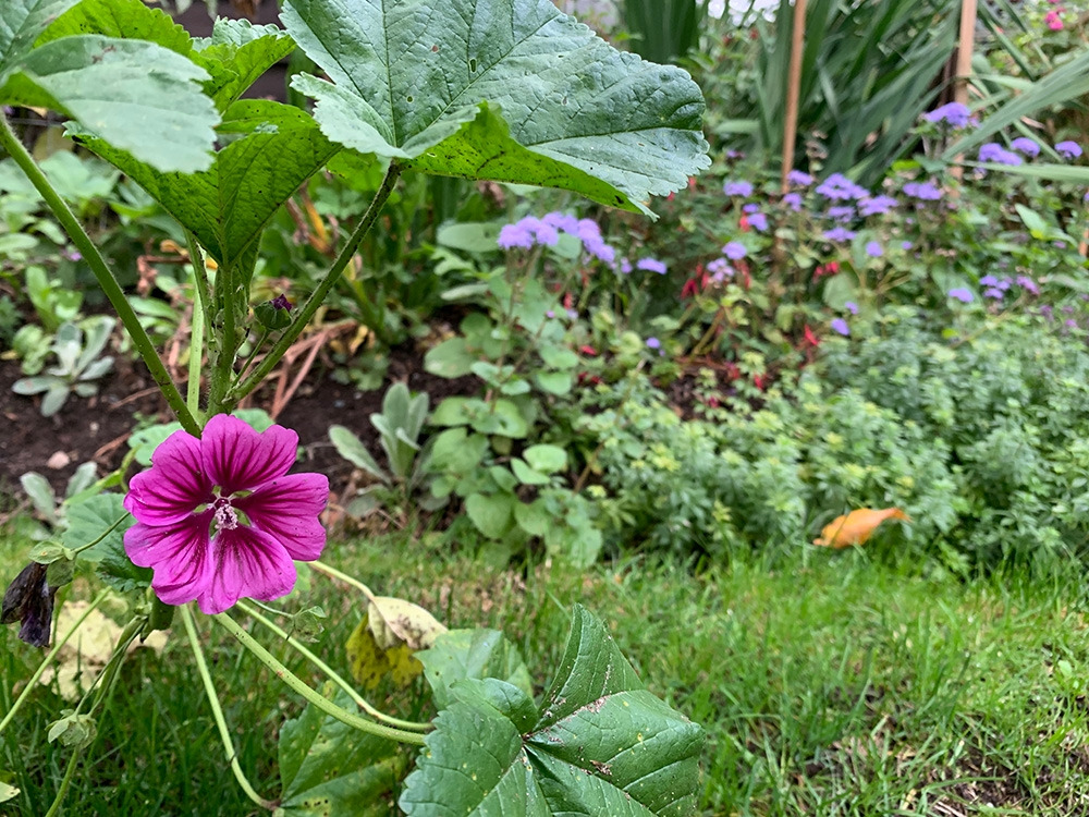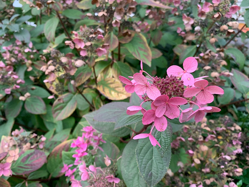 가을은 마당의 색을 바꿔 놓았다. 수국은 완전히 분홍으로 물들었고, 두릅나무도 위쪽부터 서서히 색이 변하기 시작했다. 그래도 여전히 남아있는 꽃들이 있었다.