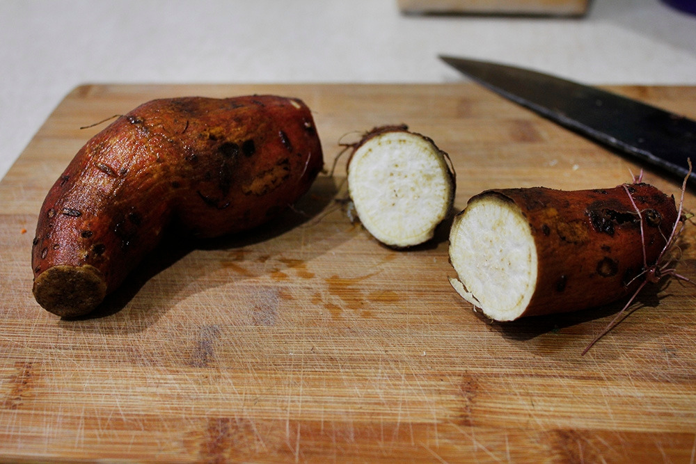 냄새를 맡아보니 그냥 고구마 냄새였다. 썰어봤다. 딱딱하지 않고, 약간 속 빈 무처럼 쉽게 썰렸다. 설컹한 그 느낌이 싫지는 않았다.