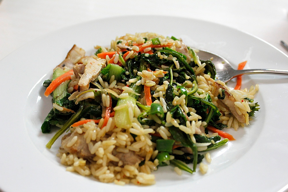 그날 저녁 집으로 들여와서, 배추 뽑은 것은 모두 볶아서 저녁 식사에 던져 넣고 고구마는 한쪽으로 밀어두었다. 집에서 키운 고추도 덤으로 들어가고, 사실 나머지는 어제 남은 음식들의 종합편이었지만, 역시 갓 뽑아온 야채라서 풍미가 좋았다.