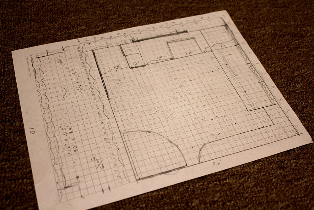 처음에는 설계도를 일단 종이에 끄적거리다가, 좀 더 깔끔하게 해 보려고 포토샵으로 각을 세워봤다. 전혀 성에 차지 않았다. 이대로 시작하기엔 너무 막연했다.