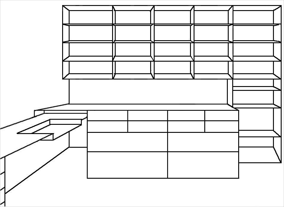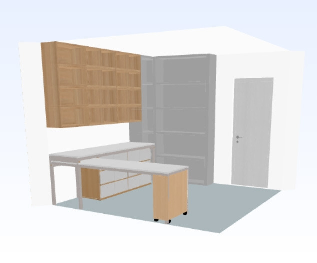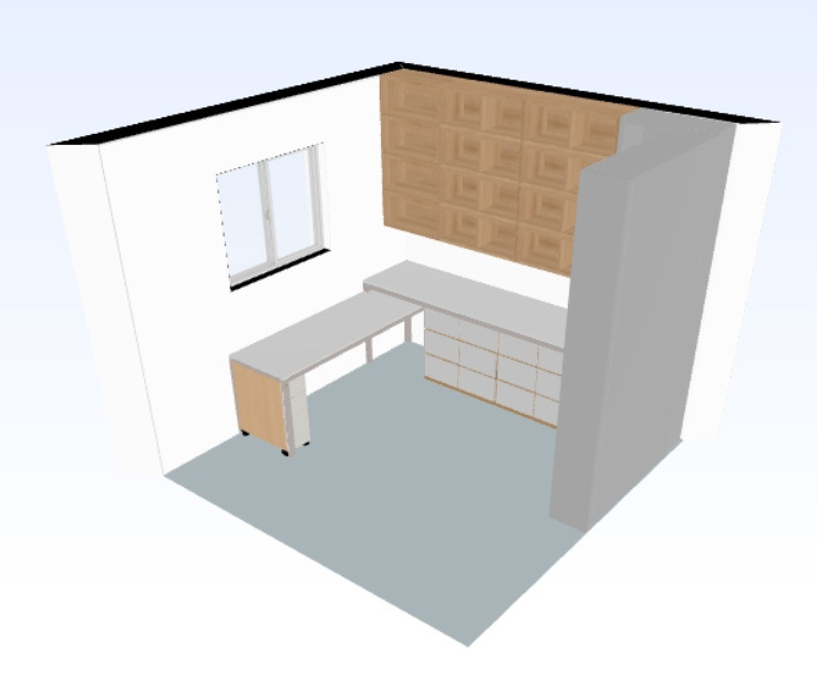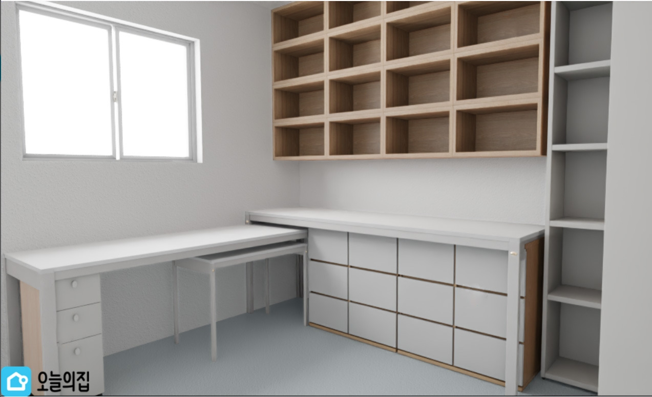 문제는 화면에 나타난 방의 모습이 은근 답답해 보였다는 것이다. 그리고 구석에 ㄱ자 모양으로 선반을 만드는 것이 아무래도 그리 보기 좋을 것 같지 않았다.