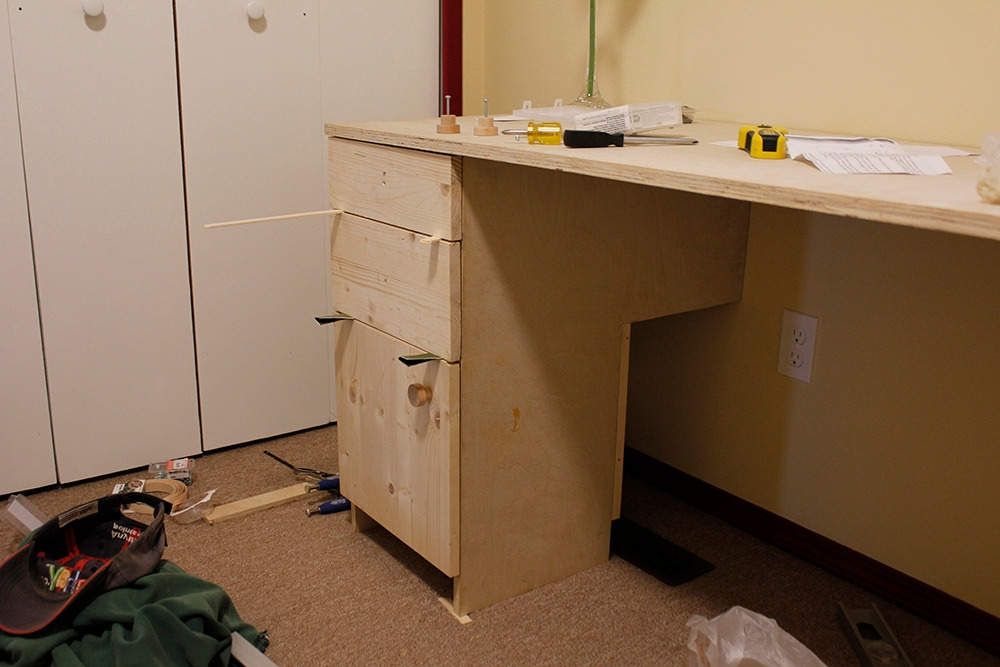 이제 책상의 왼쪽 지지대 겸 서랍을 만들 차례가 되었다. 남편은 선반과 침대 벽장 등등은 수도 없이 만들어봤는데, 놀랍게도 서랍은 한 번도 안 만들어봤다고 했다. 나는 남편이 당연히 서랍을 만들 줄 안다고 생각했다.