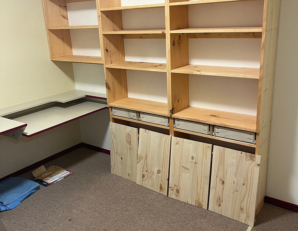 결국 손잡이도 다 칠하고, 아래 문짝까지 완전히 마무리해서 완성했다! 문이 달린 선반은 안쪽에 두 칸으로 나눠서 수납을 더욱 효율적으로 하기로 했다.