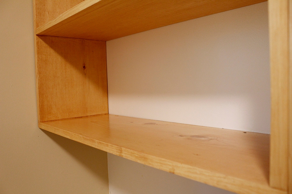 제작이 끝난 후에는 다시 오일을 입히고 닦아서 제자리에 끼워 넣었다. 사이즈는 계획대로 딱 맞아떨어졌다. 세워놓은 상태에서 서랍을 끼워놓고, 앞의 문을 붙였다. 간격을 나란히 맞추느라 신경이 곤두섰지만 결국 잘 마무리되었다.