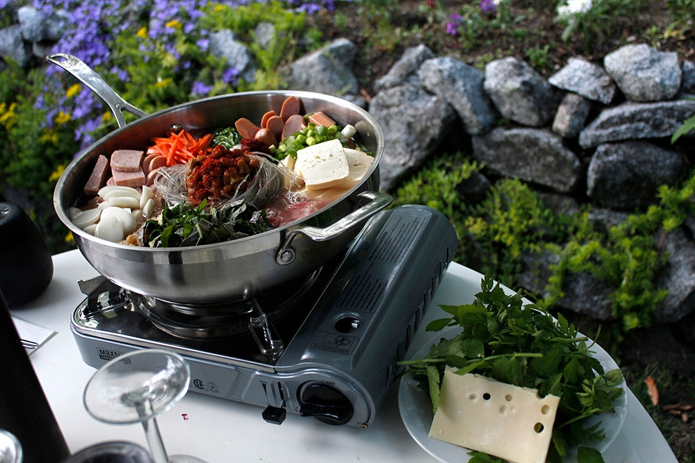 사실 맛있을 수밖에 없는 음식이다. 각종 맛있는 것들을 다 넣지 않는가! 스팸과 소시지, 고기, 두부 치즈 등 단백질이 듬뿍 들어가고, 야채도 김치와 배추, 당근, 양파, 파 등등 또 넉넉히 넣는다. 거기에 깻잎과 미나리를 얹어서 느끼함을 싹 잡아주니 더욱 훌륭하다.