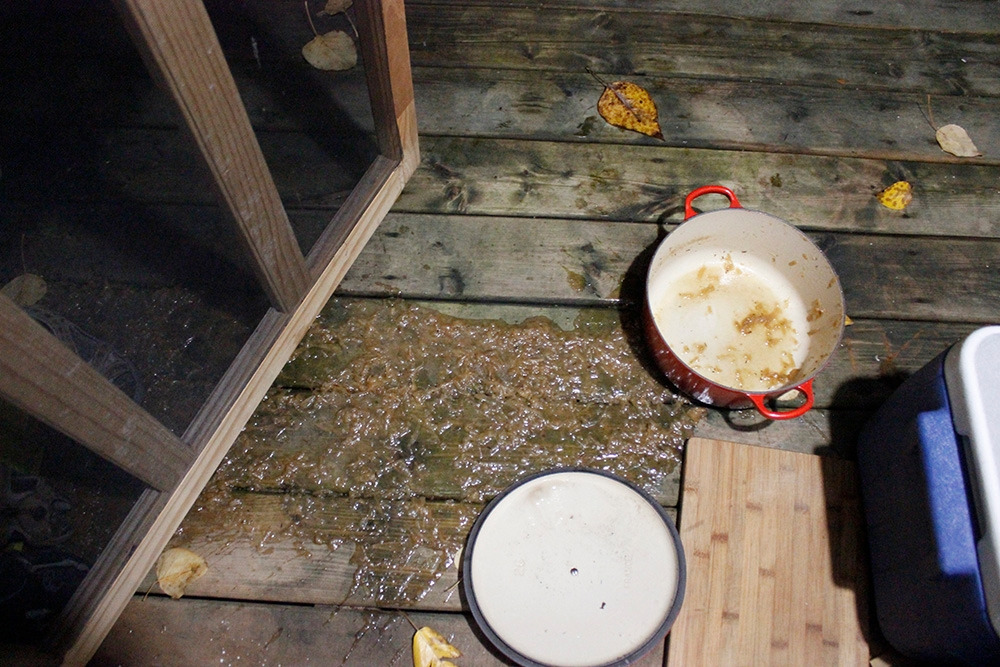 수프는 프렌치 어니언 수프(French onion soup)로 결정했는데, 문제가 발생했다. 생일 파티 전날 자그마치 세 시간이나 걸려서 정성껏 만든 수프를, 시원한 곳에 내놓는다고 했다가, 데크까지 방문한 곰에게 털렸기 때문이다. 밤에 와장창 하는 소리가 나서 나가보니, 곰이 양파를 입에 물고 허둥지둥 도망가고 있었다. 낭패였다.