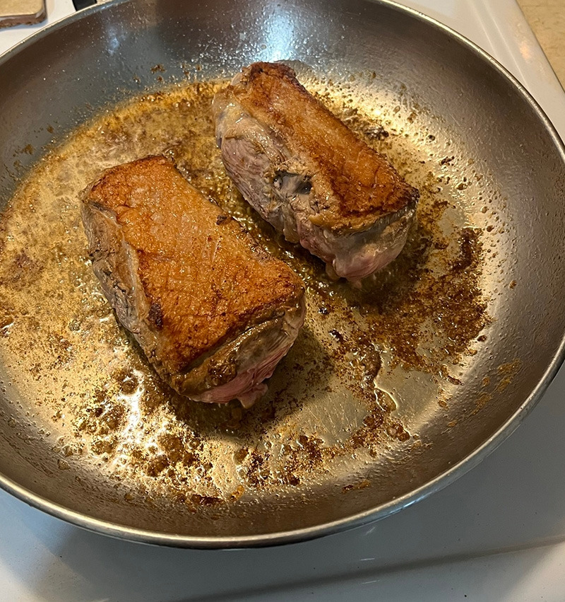 우리가 저녁 식사로 주문한 것은 오리 가슴살이었다. 품질 좋은 가금류 고기를 파는 농장에서 깨끗하게 준비된 오리 가슴살을 배달받았다. 생일에 차리는 음식을 위해서 연습을 해보겠다며 넉넉히 주문한 덕에 우리는 미리 한 번 해 먹어볼 수 있었다.