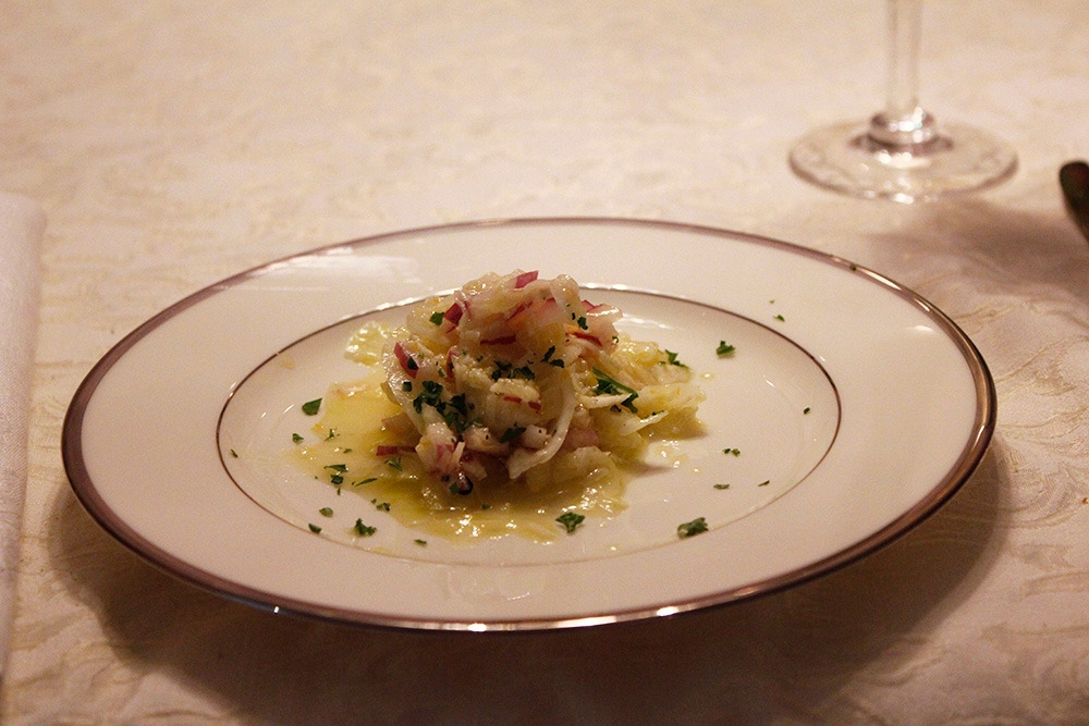 그러고 나면 전식(Antipasti) 차례이다. 우리 부부는 둘 다 해산물을 좋아해서 늘 해산물 코스로 차리는데, 그러자면 훈제연어가 전식으로 제맛이다. 집에서 훈제한 연어를 올리브오일과 버무려서 케이퍼와 단단한 과자를 곁들인다.