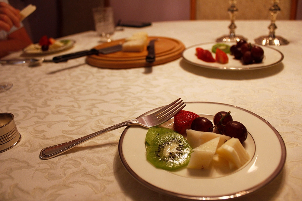 이제 거의 끝나간다. 치즈와 과일(Formaggi e Frutta) 코스다. 이탈리안 치즈로 남편이 골라왔는데, 이름은 뭔지 기억이 안 난다. 다만 이번 와인은 소비뇽 블랑(Sauvignon Blanc)으로 준비해서 곁들였다.