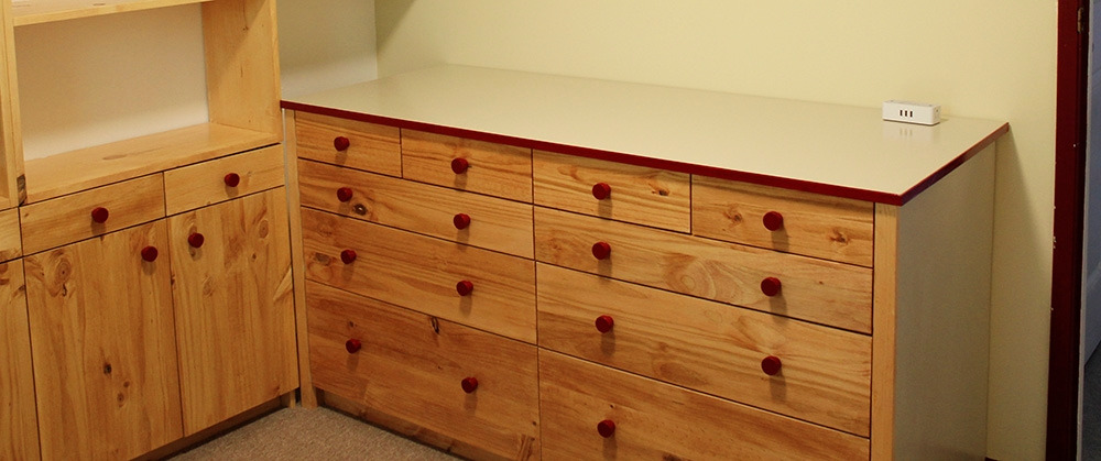 서랍을 끼우기 전의 모습. 모서리를 잘 다듬은 후 빨간 페인트를 칠해 마무리하였다.