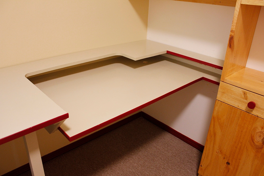 서랍이 있는 컴퓨터 책상, 높이 조절 가능한 매립형 재봉틀 책상, 천장까지 닿는 선반장에 아래쪽은 서랍과 수납장, 내 키에 맞는 작업대와 큼직한 서랍까지, 더 이상 완벽할 수 없는 방이 되었다.